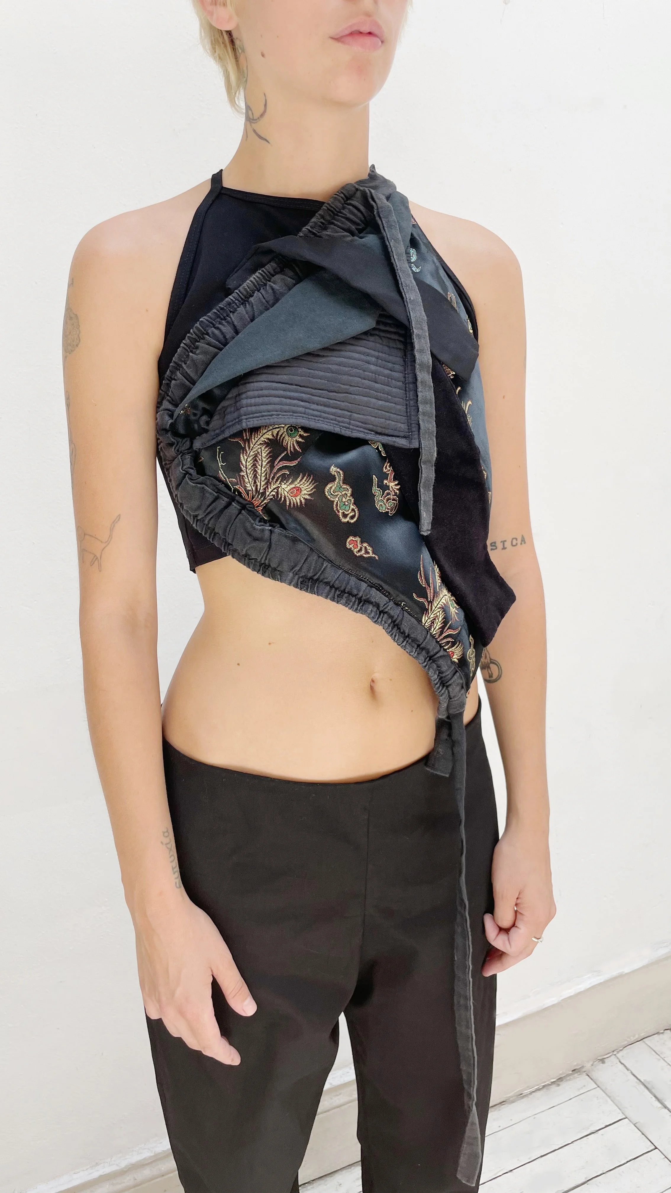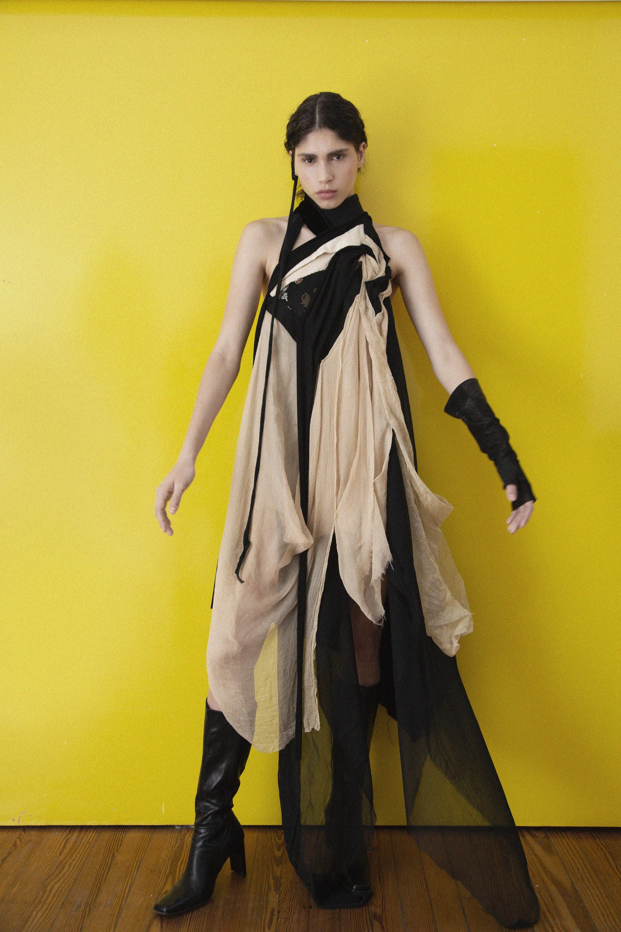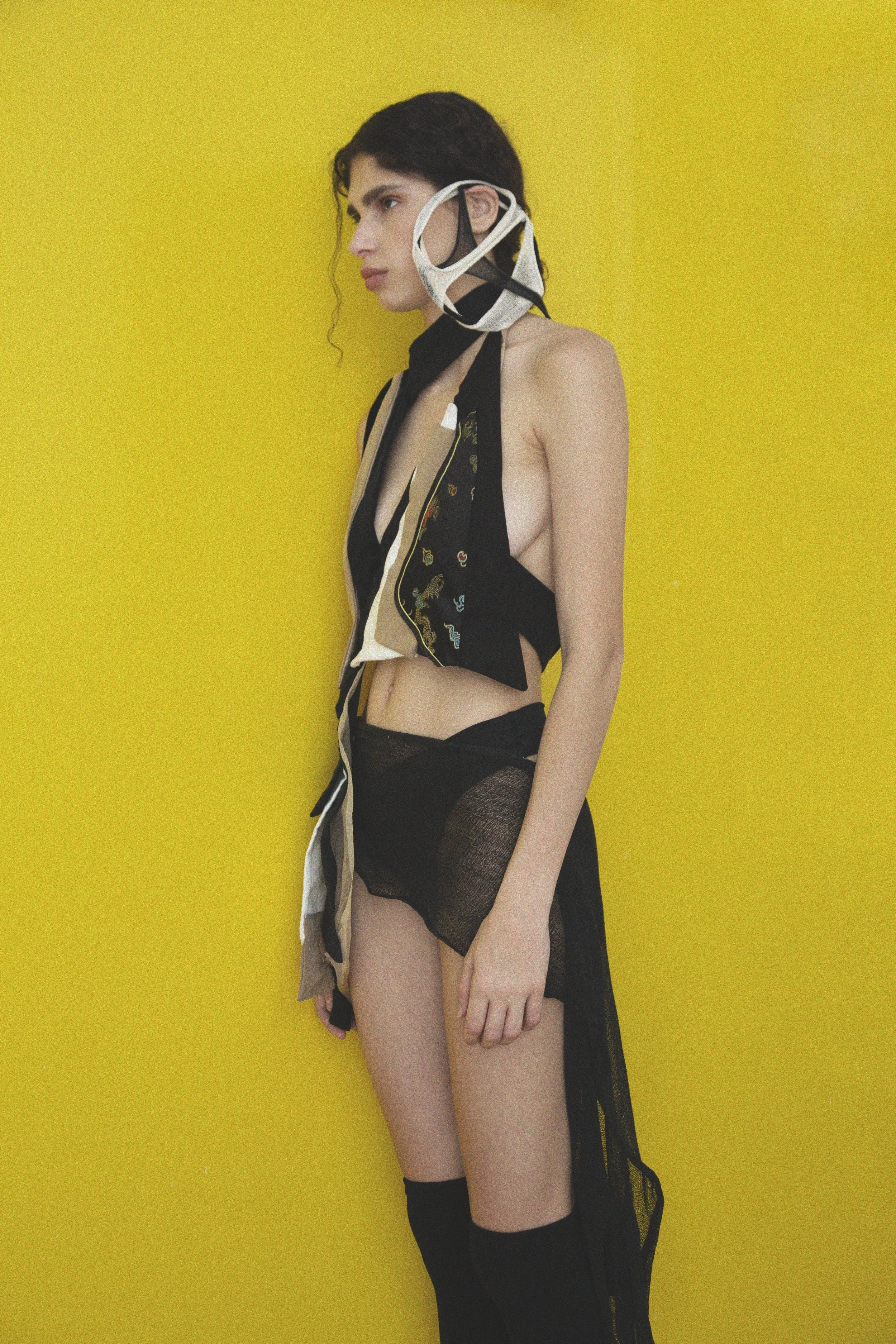 There was a sense of necessity; there wasn't the possibility of buying new things, so I reinterpreted the clothes I had at home, those my mom allowed me to use. And that's why I decided to study fashion design. Textiles are wonderful when it comes to creating – they are friendly, soft, and ethereal. I've always been fascinated by the idea of linking anatomy to textile morphology. So, circling back to the question, I actually think that sustainability was the result of a need. My materials were what was available, and transforming them was my way. Fashion was also a result; I never cared much about the world of fashion, and its rhythms always scared and internally blocked me. When I was younger, I couldn't understand how I would ever fit into that fast-paced world, as my enjoyment lies in the intentional and almost spiritual creation of each piece. So, for this reason, I would say that my work is totally and absolutely linked to art, using clothing as a creative expression.