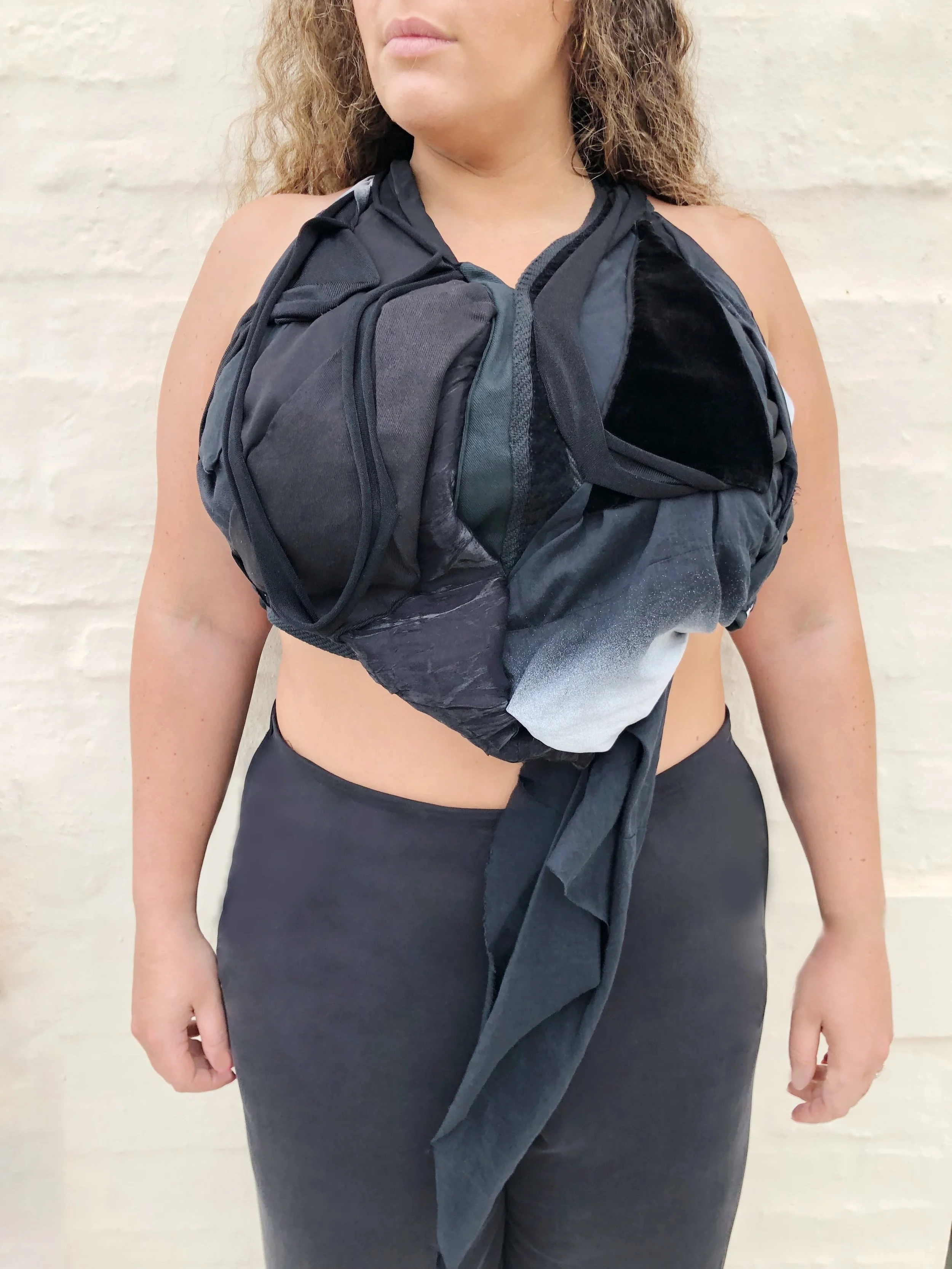 “I’m a textile sculptor and garment designer. My work revolves around reinterpreting discarded materials. My goal is not only to propel sustainable practices but also to explore the fascinating idea that something deemed lifeless can experience a rebirth creating its own independent existence.